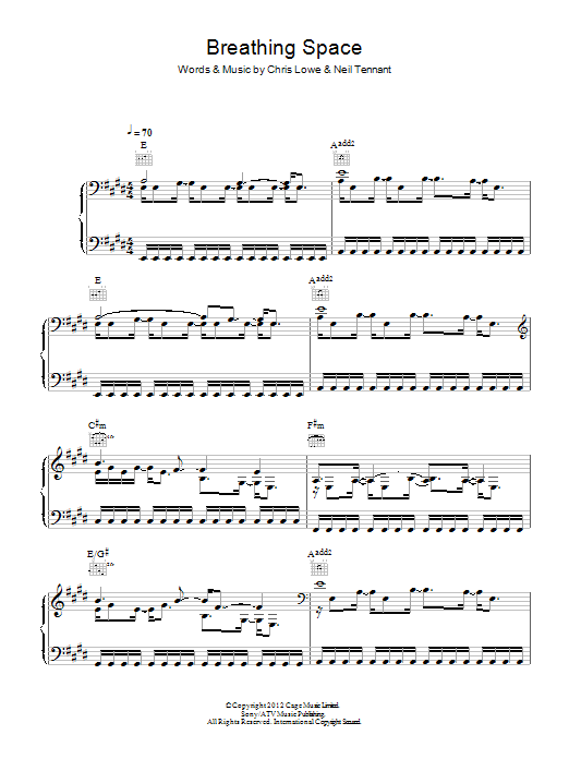 Download or print Pet Shop Boys Breathing Space sheet music, chords and digital score arranged for Piano, Vocal & Guitar Chords. This Pop score includes 5 page(s).