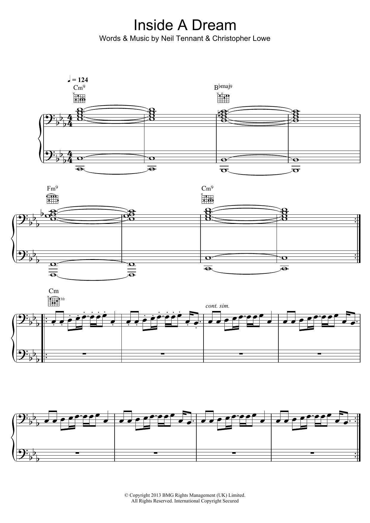 Download or print Pet Shop Boys Inside A Dream sheet music, chords and digital score arranged for Piano, Vocal & Guitar Chords. This Pop score includes 8 page(s).