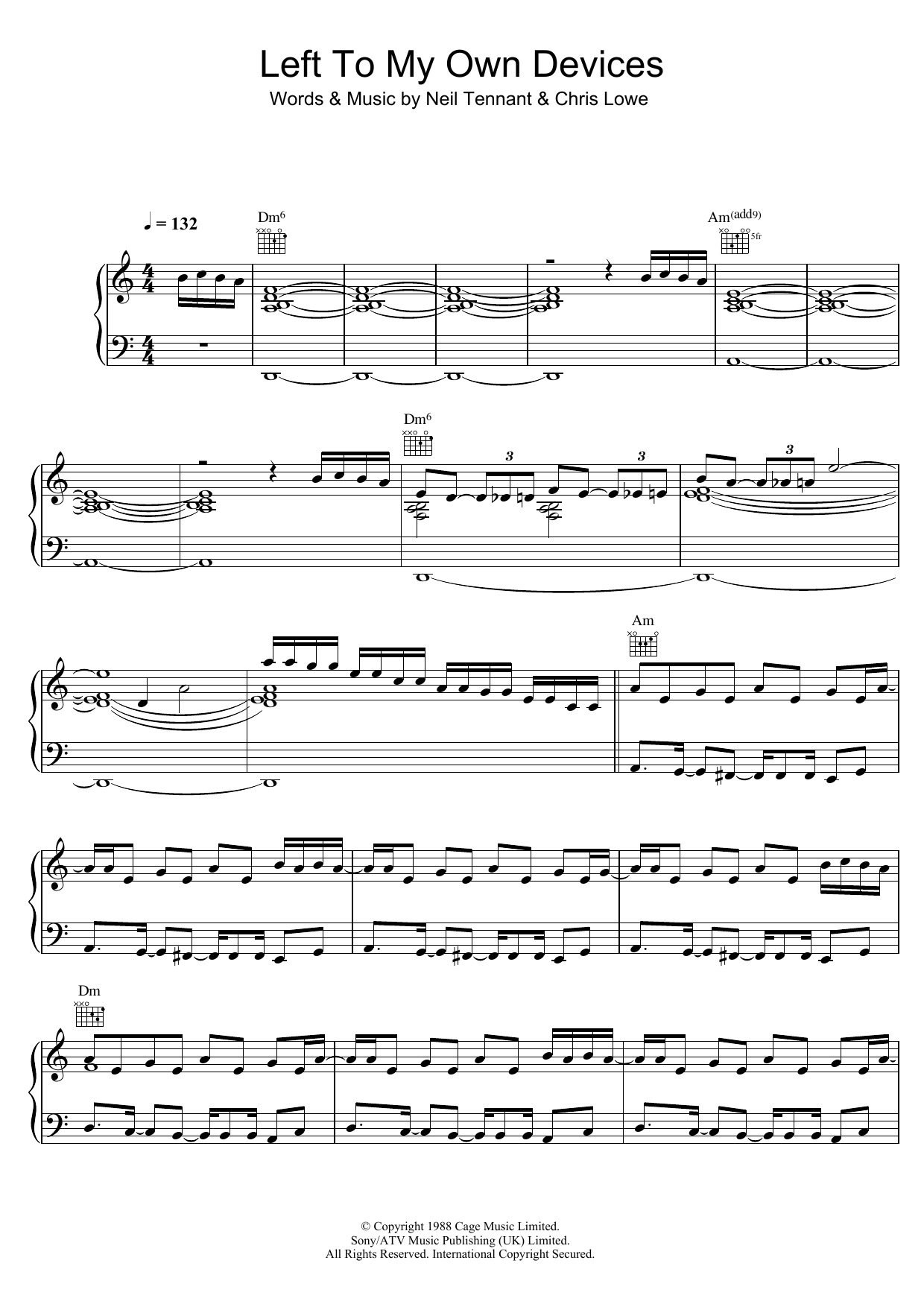 Download or print Pet Shop Boys Left To My Own Devices sheet music, chords and digital score arranged for Piano, Vocal & Guitar Chords. This Pop score includes 8 page(s).