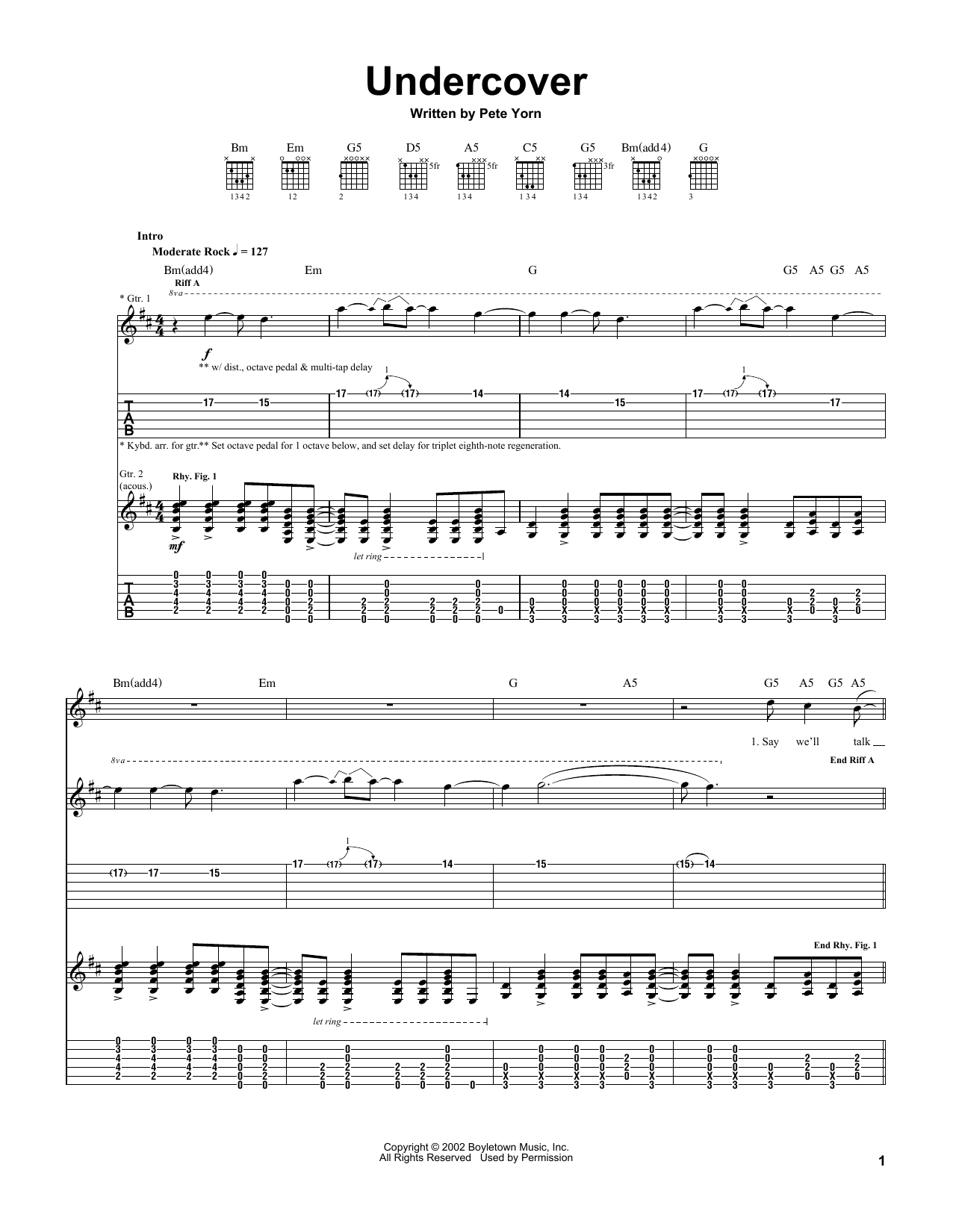 Download or print Pete Yorn Undercover sheet music, chords and digital score arranged for Guitar Tab. This Pop score includes 7 page(s).