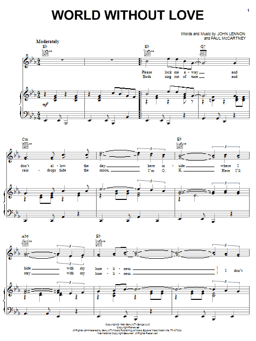 Download or print Peter and Gordon World Without Love sheet music, chords and digital score arranged for Lead Sheet / Fake Book. This Pop score includes 3 page(s).