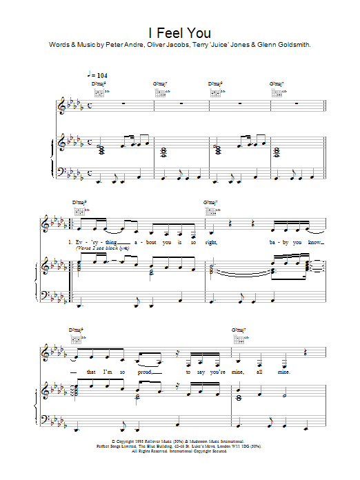 Download or print Peter Andre I Feel You sheet music, chords and digital score arranged for Piano, Vocal & Guitar Chords. This Pop score includes 5 page(s).