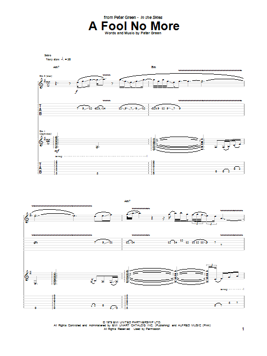 Download or print Peter Green A Fool No More sheet music, chords and digital score arranged for Guitar Tab. This Blues score includes 19 page(s).