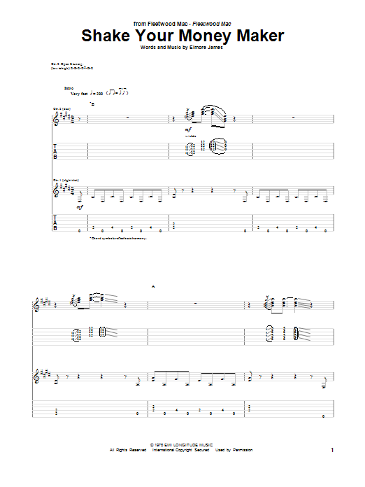 Download or print Peter Green Shake Your Money Maker sheet music, chords and digital score arranged for Guitar Tab. This Pop score includes 9 page(s).