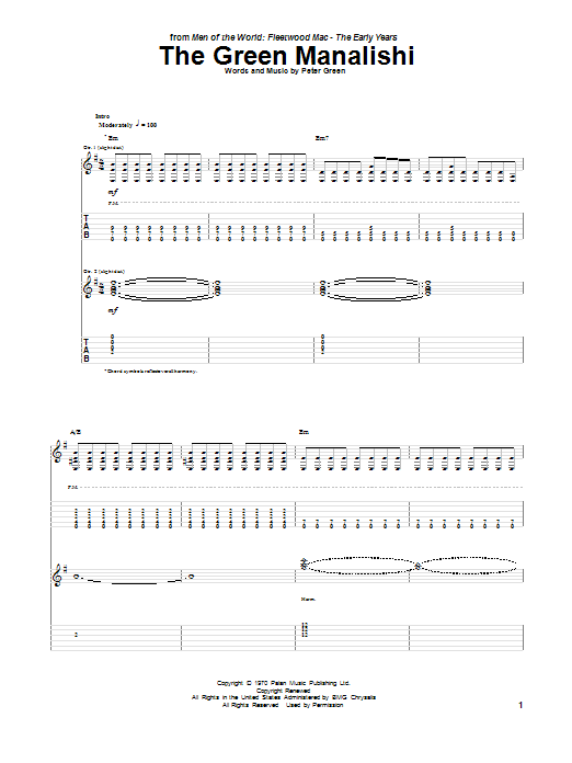 Download or print Peter Green The Green Manalishi sheet music, chords and digital score arranged for Guitar Tab. This Blues score includes 13 page(s).