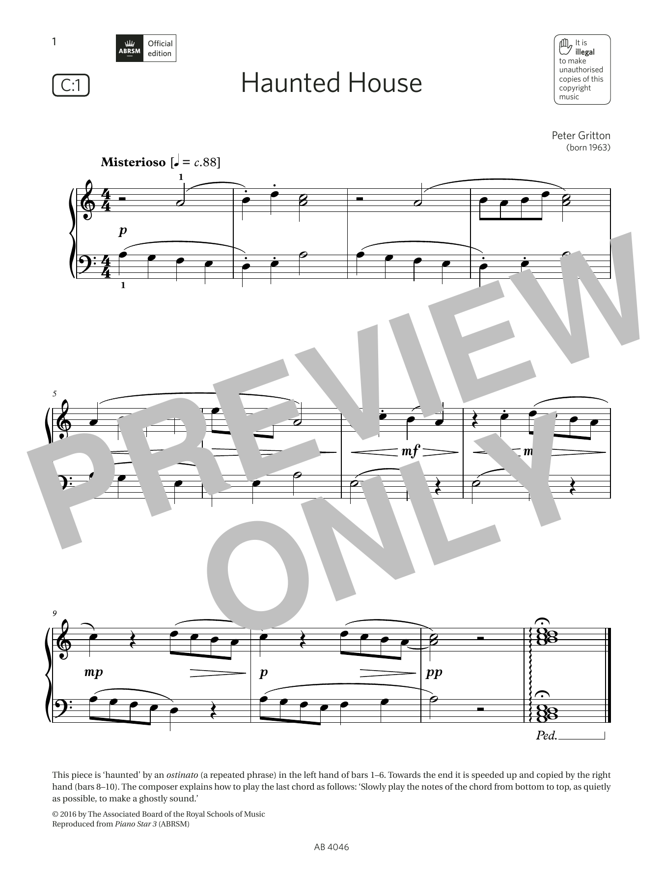 Download or print Peter Gritton Haunted House (Grade Initial, list C1, from the ABRSM Piano Syllabus 2023 & 2024) sheet music, chords and digital score arranged for Piano Solo. This Classical score includes 1 page(s).