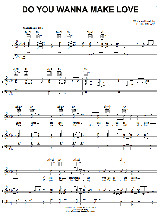 Download or print Peter McCann Do You Wanna Make Love sheet music, chords and digital score arranged for Piano, Vocal & Guitar Chords (Right-Hand Melody). This Pop score includes 4 page(s).