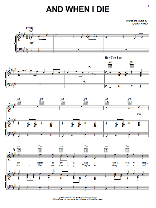 Download or print Blood, Sweat & Tears And When I Die sheet music, chords and digital score arranged for Real Book – Melody & Chords. This Jazz score includes 2 page(s).