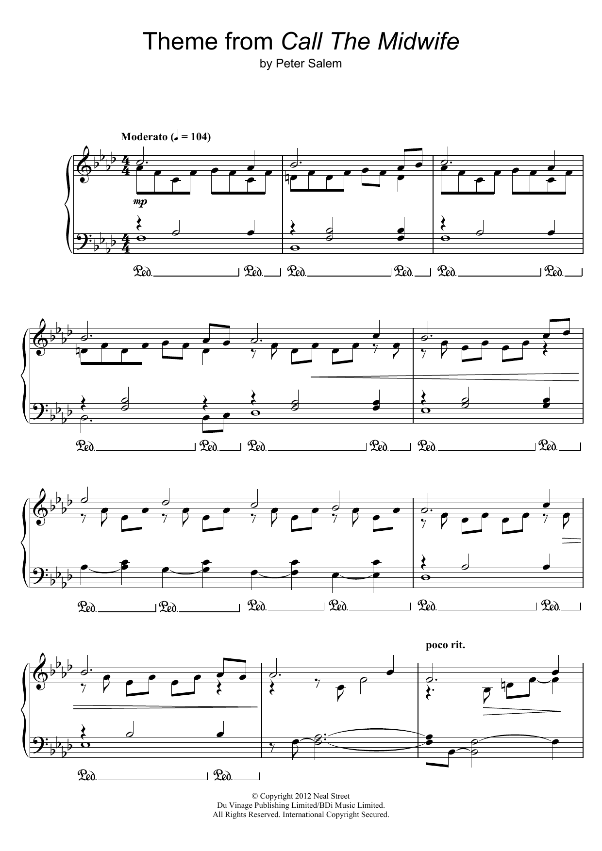 Download or print Peter Salem Theme from Call The Midwife sheet music, chords and digital score arranged for Piano Solo. This Film/TV score includes 3 page(s).