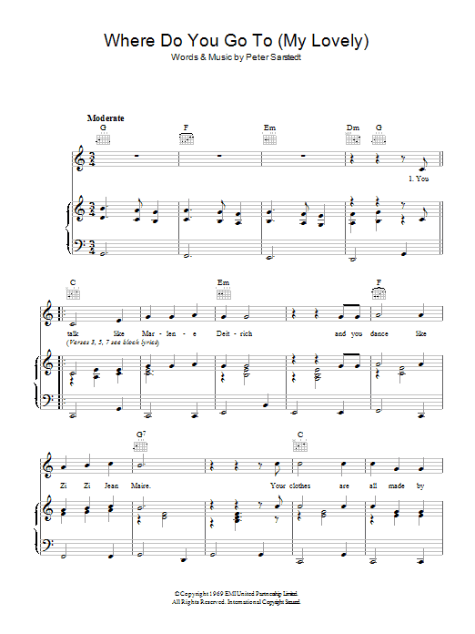 Download or print Peter Sarstedt Where Do You Go To (My Lovely) sheet music, chords and digital score arranged for Easy Piano. This Standards score includes 4 page(s).