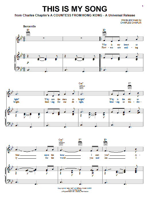 Download or print Petula Clark This Is My Song sheet music, chords and digital score arranged for Lead Sheet / Fake Book. This Film/TV score includes 1 page(s).