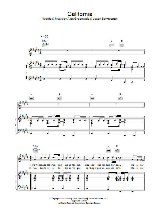 Download or print Phantom Planet California sheet music, chords and digital score arranged for Guitar Tab. This Rock score includes 9 page(s).