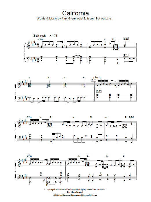 Download or print Phantom Planet California (theme from The OC) sheet music, chords and digital score arranged for Piano Solo. This Film/TV score includes 4 page(s).