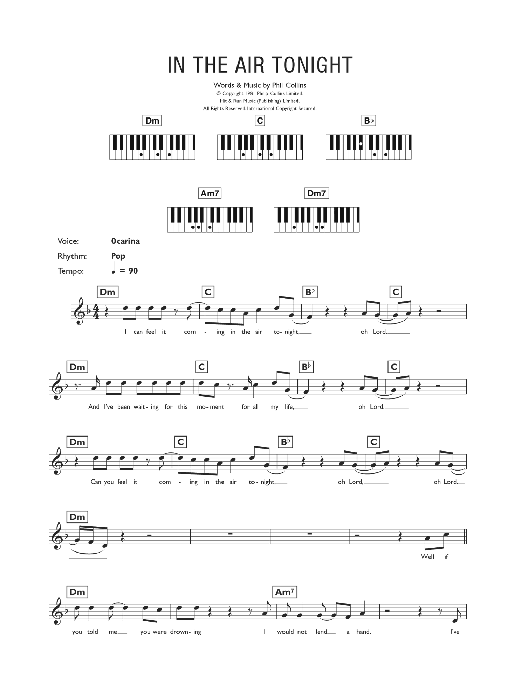 Download or print Phil Collins In The Air Tonight sheet music, chords and digital score arranged for Flute Solo. This Pop score includes 2 page(s).