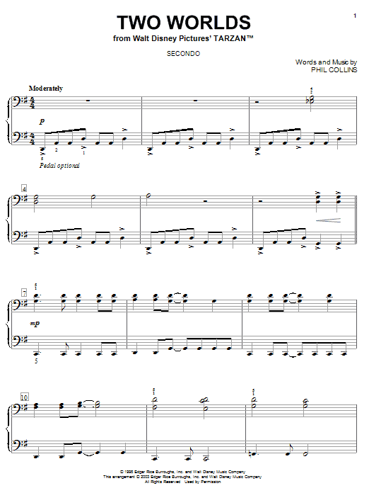 Download or print Phil Collins Two Worlds sheet music, chords and digital score arranged for Beginning Piano Solo. This Children score includes 3 page(s).