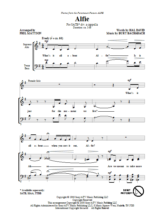 Download or print Phil Mattson Alfie sheet music, chords and digital score arranged for SSA Choir. This Jazz score includes 5 page(s).
