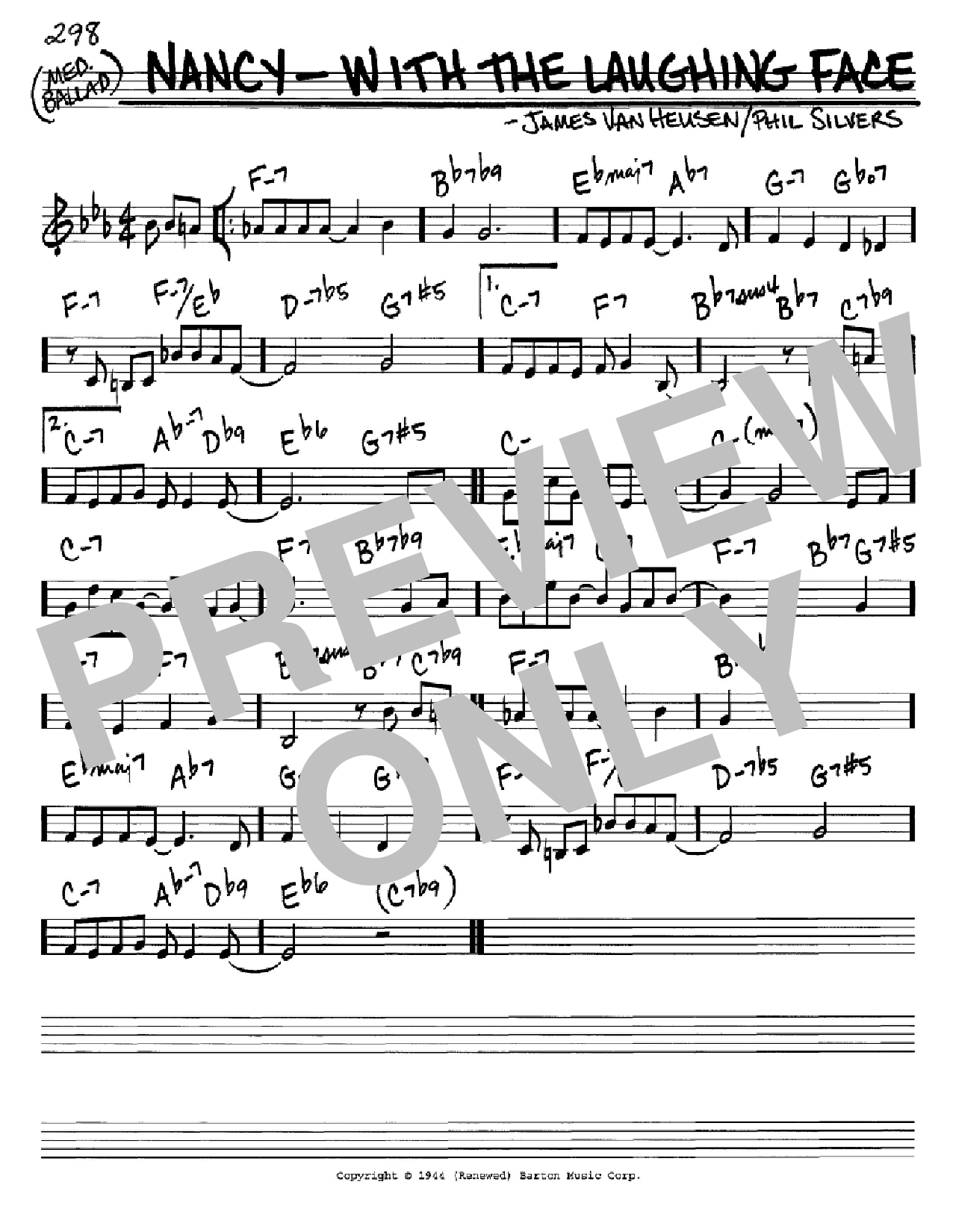 Download or print Phil Silvers Nancy - With The Laughing Face sheet music, chords and digital score arranged for Real Book – Melody & Chords – C Instruments. This Jazz score includes 1 page(s).