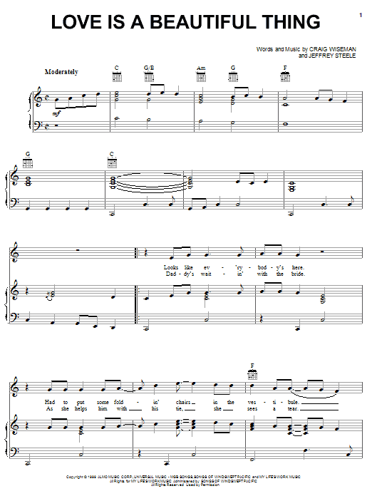 Download or print Phil Vassar Love Is A Beautiful Thing sheet music, chords and digital score arranged for Piano, Vocal & Guitar Chords (Right-Hand Melody). This Country score includes 7 page(s).