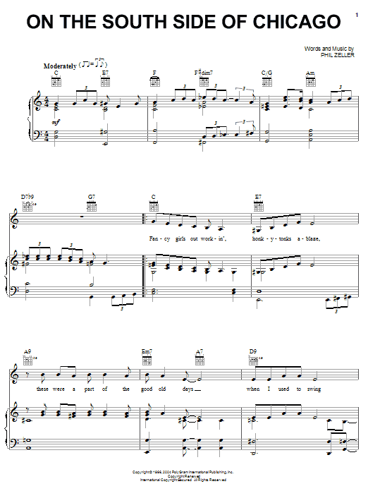 Download or print Phil Zeller On The South Side Of Chicago sheet music, chords and digital score arranged for Piano, Vocal & Guitar Chords (Right-Hand Melody). This Country score includes 4 page(s).