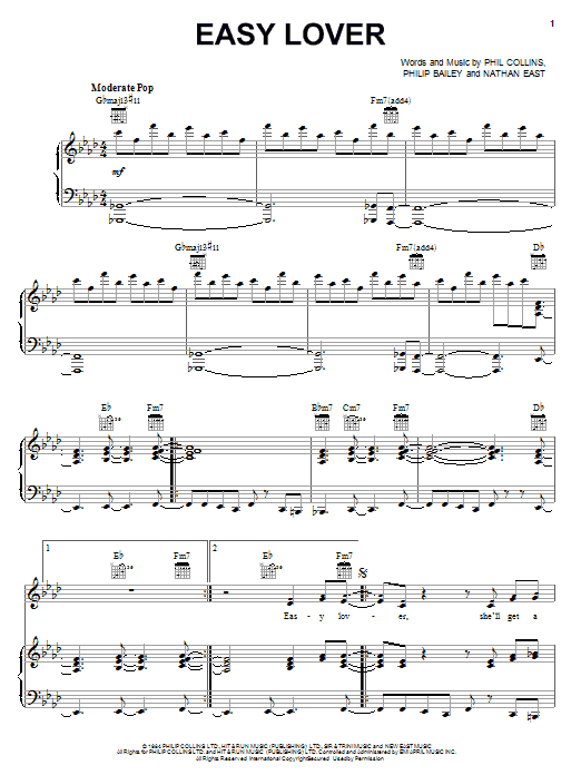 Download or print Phil Collins & Philip Bailey Easy Lover sheet music, chords and digital score arranged for Piano, Vocal & Guitar Chords (Right-Hand Melody). This Pop score includes 6 page(s).