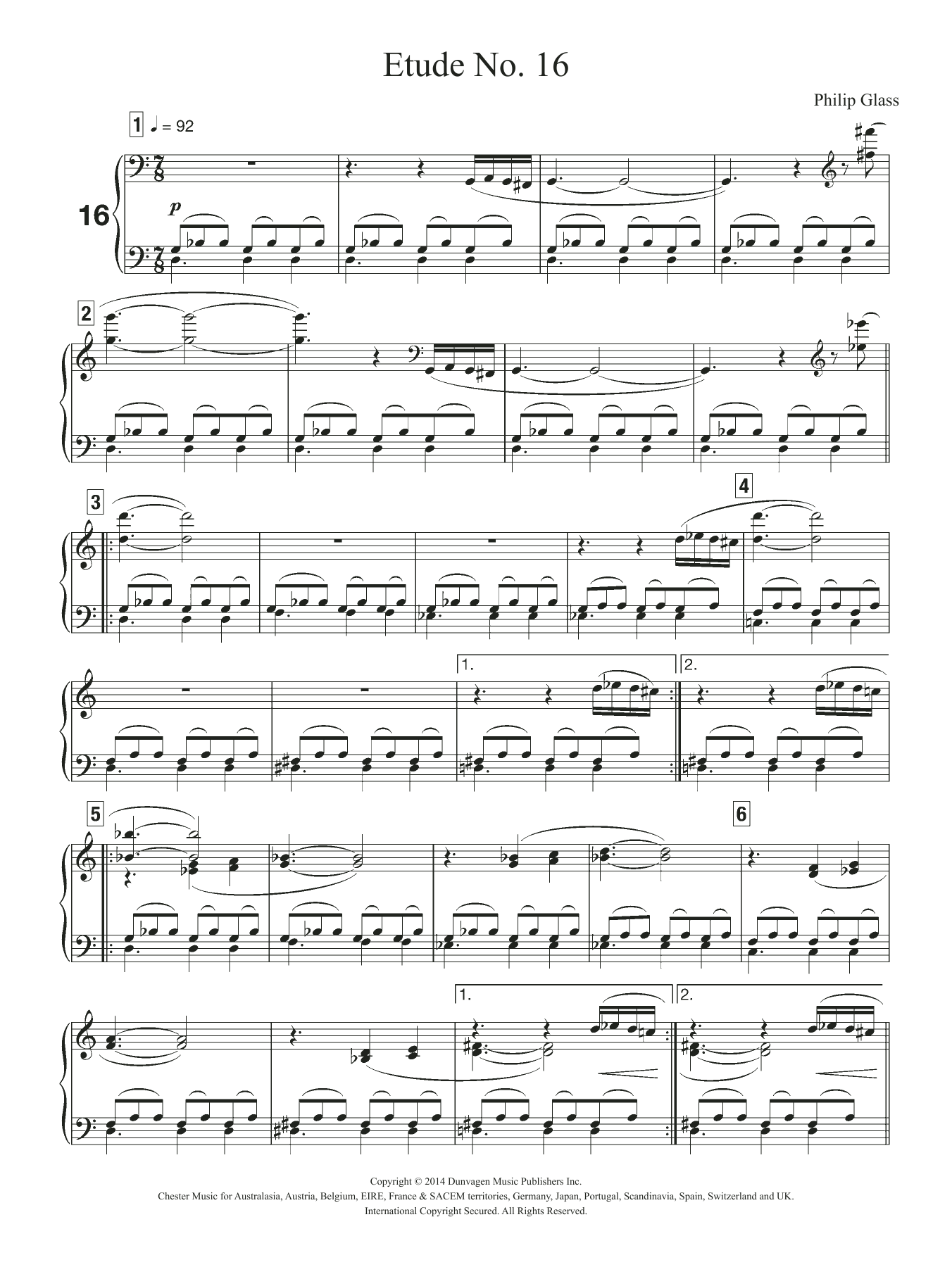 Download or print Philip Glass Etude No. 16 sheet music, chords and digital score arranged for Piano Solo. This Classical score includes 4 page(s).