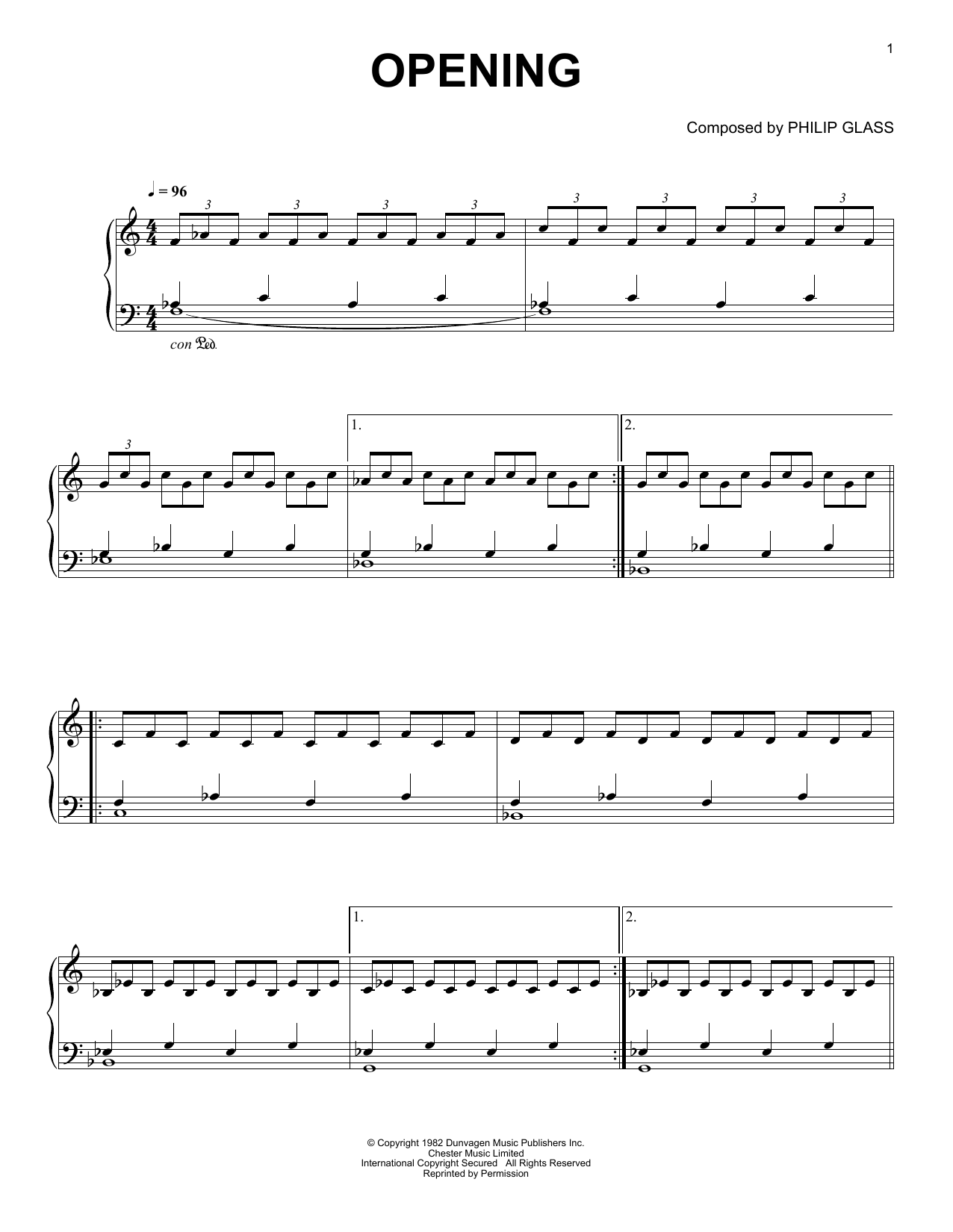 Download or print Philip Glass Opening sheet music, chords and digital score arranged for Easy Piano. This New Age score includes 2 page(s).