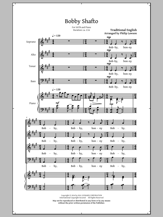 Download or print Philip Lawson Bobby Shafto sheet music, chords and digital score arranged for SAB Choir. This Folk score includes 14 page(s).