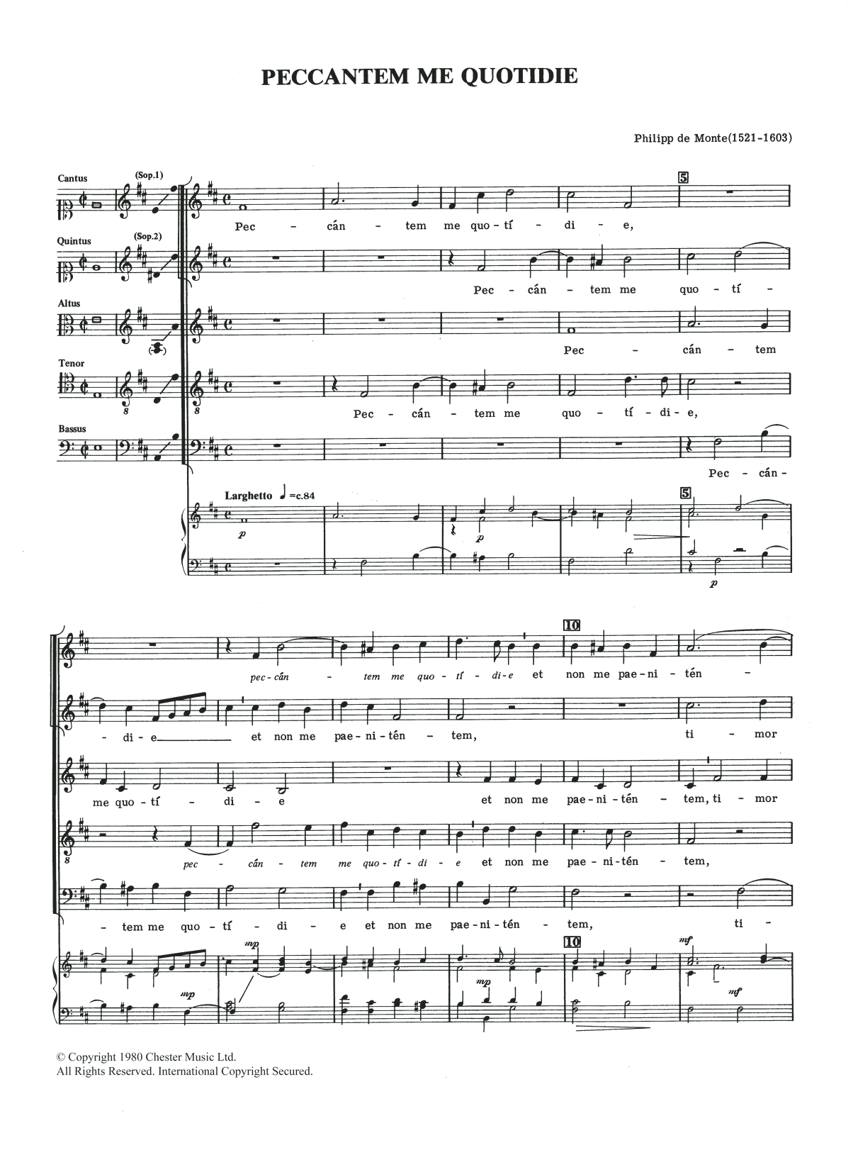 Download or print Philippe de Monte Peccantem Me Quotidie sheet music, chords and digital score arranged for SATB Choir. This Classical score includes 4 page(s).