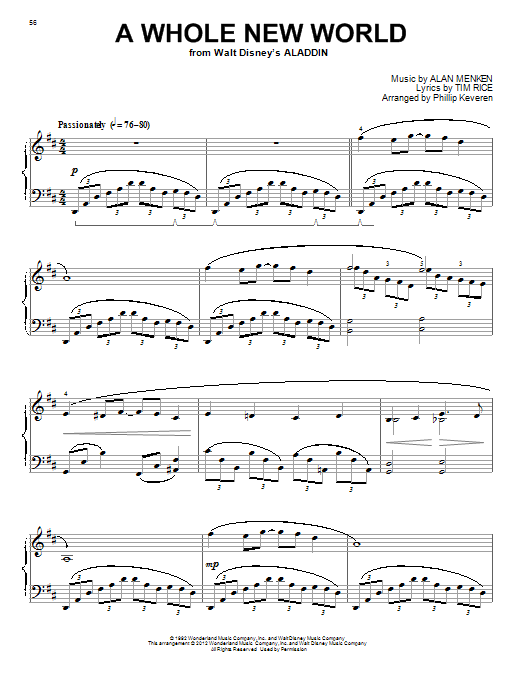 Download or print Alan Menken & Tim Rice A Whole New World [Classical version] (from Aladdin) (arr. Phillip Keveren) sheet music, chords and digital score arranged for Piano Solo. This Children score includes 6 page(s).