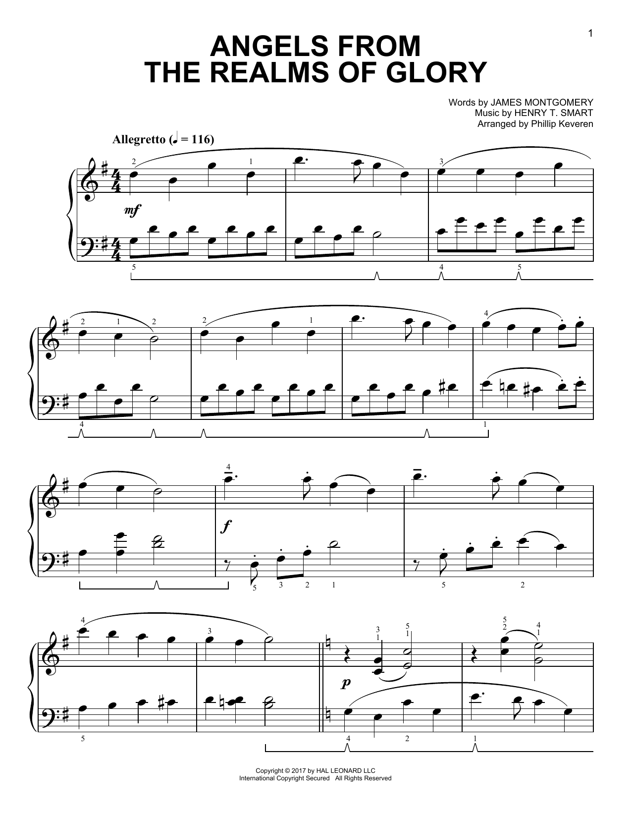 Quick facts Angels From The Realms Of Glory [Classical version] (arr. Phillip Keveren) about digital sheet music