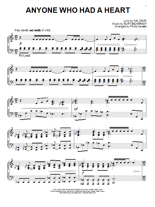 Quick facts Anyone Who Had A Heart (arr. Phillip Keveren) about digital sheet music