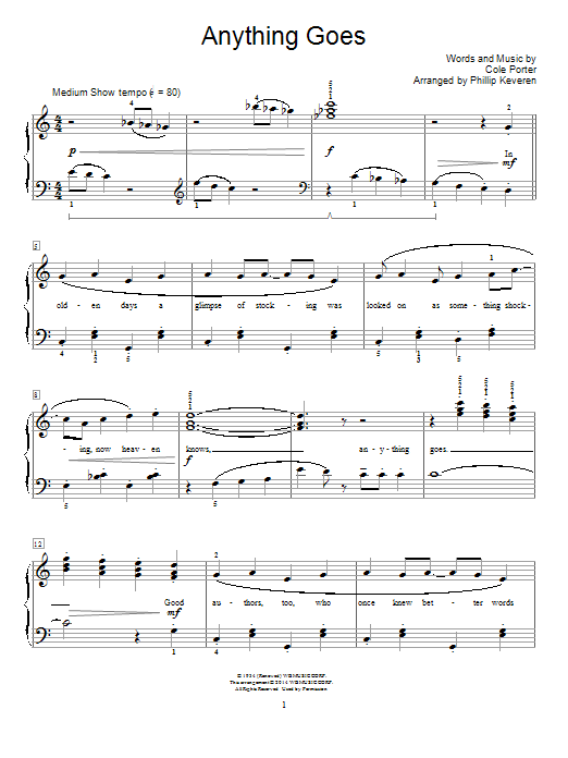 Quick facts Anything Goes (arr. Phillip Keveren) about digital sheet music