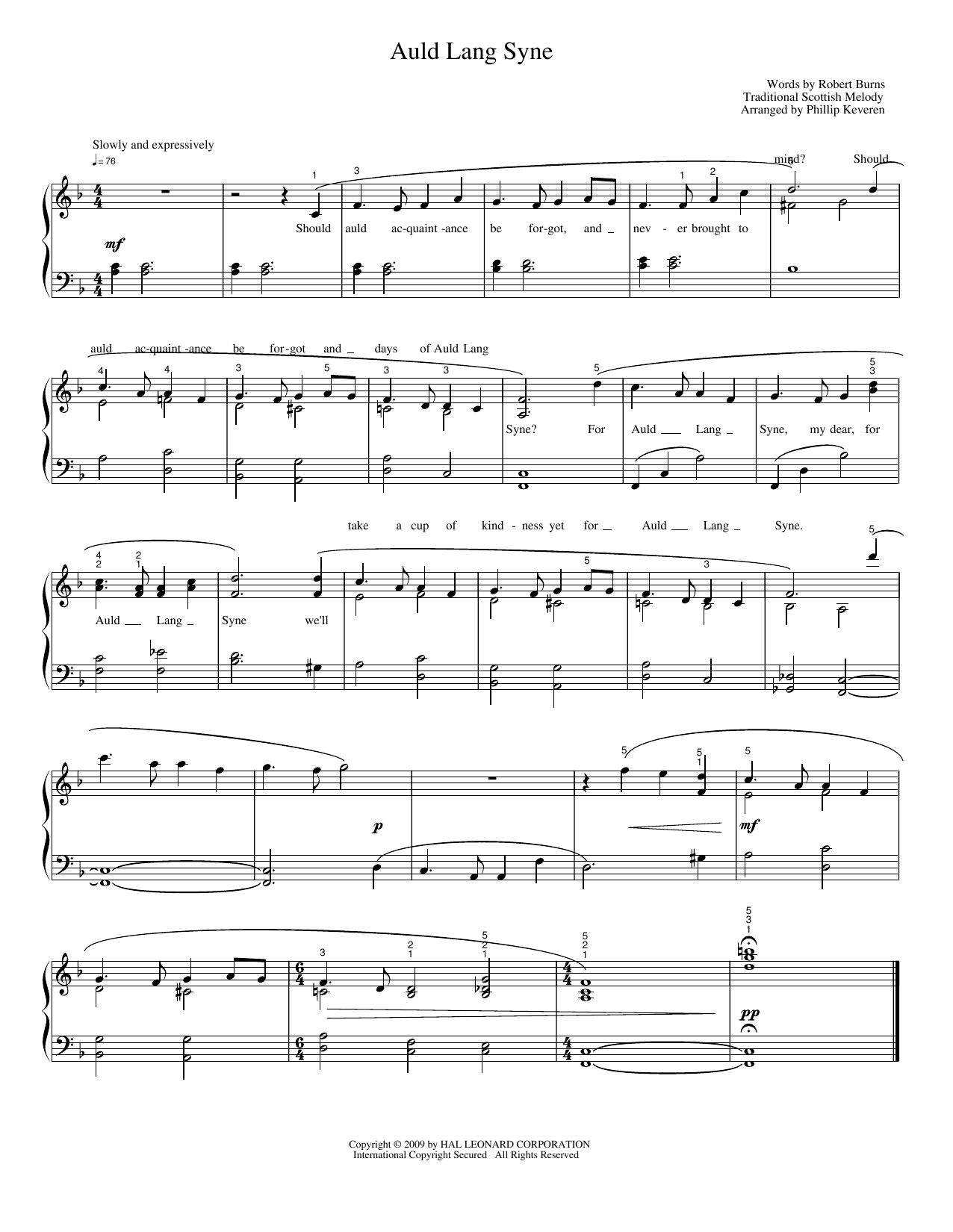 Download or print Phillip Keveren Auld Lang Syne sheet music, chords and digital score arranged for Piano Solo. This Instructional score includes 1 page(s).
