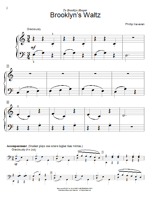 Download or print Phillip Keveren Brooklyn's Waltz sheet music, chords and digital score arranged for Piano Duet. This Children score includes 2 page(s).