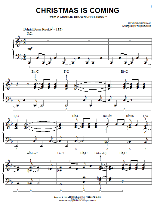 Download or print Vince Guaraldi Christmas Is Coming (arr. Phillip Keveren) sheet music, chords and digital score arranged for Piano Solo. This Children score includes 3 page(s).