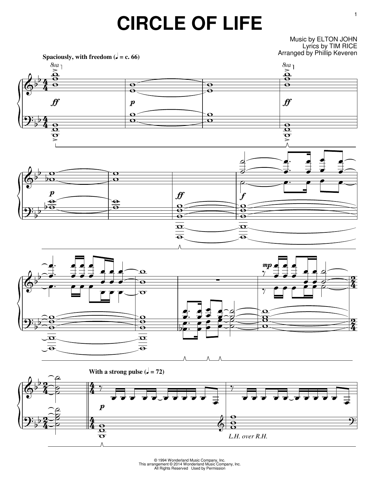 Download or print Elton John Circle Of Life (from The Lion King) [Classical version] (arr. Phillip Keveren) sheet music, chords and digital score arranged for Piano Solo. This Children score includes 6 page(s).
