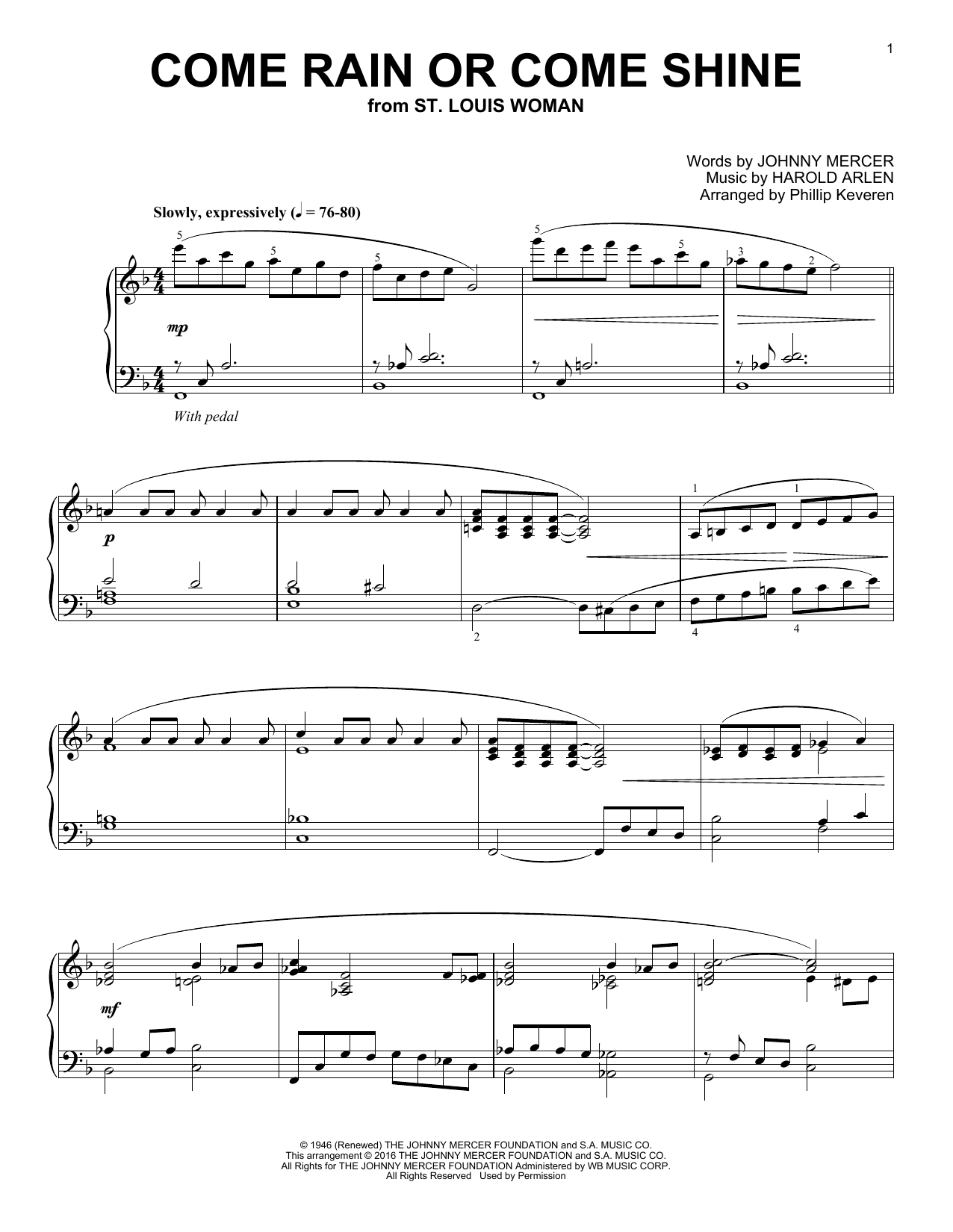 Quick facts Come Rain Or Come Shine (arr. Phillip Keveren) about digital sheet music