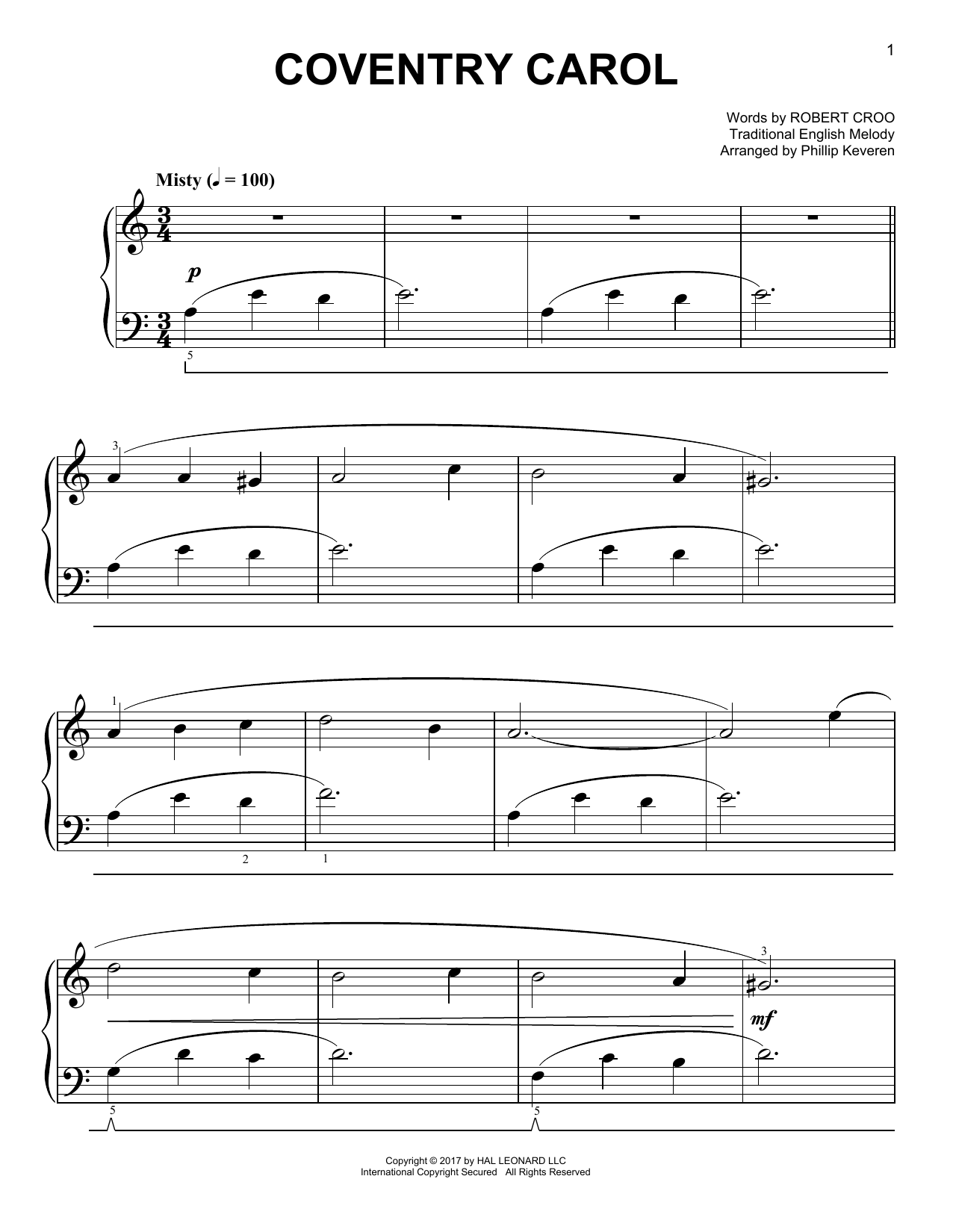 Download or print Traditional English Melody Coventry Carol [Classical version] (arr. Phillip Keveren) sheet music, chords and digital score arranged for Easy Piano. This Christmas score includes 3 page(s).