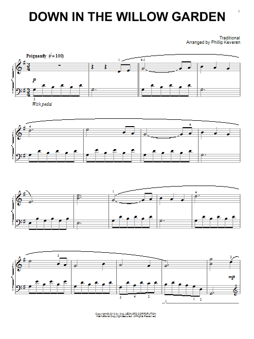 Quick facts Down In The Willow Garden (arr. Phillip Keveren) about digital sheet music