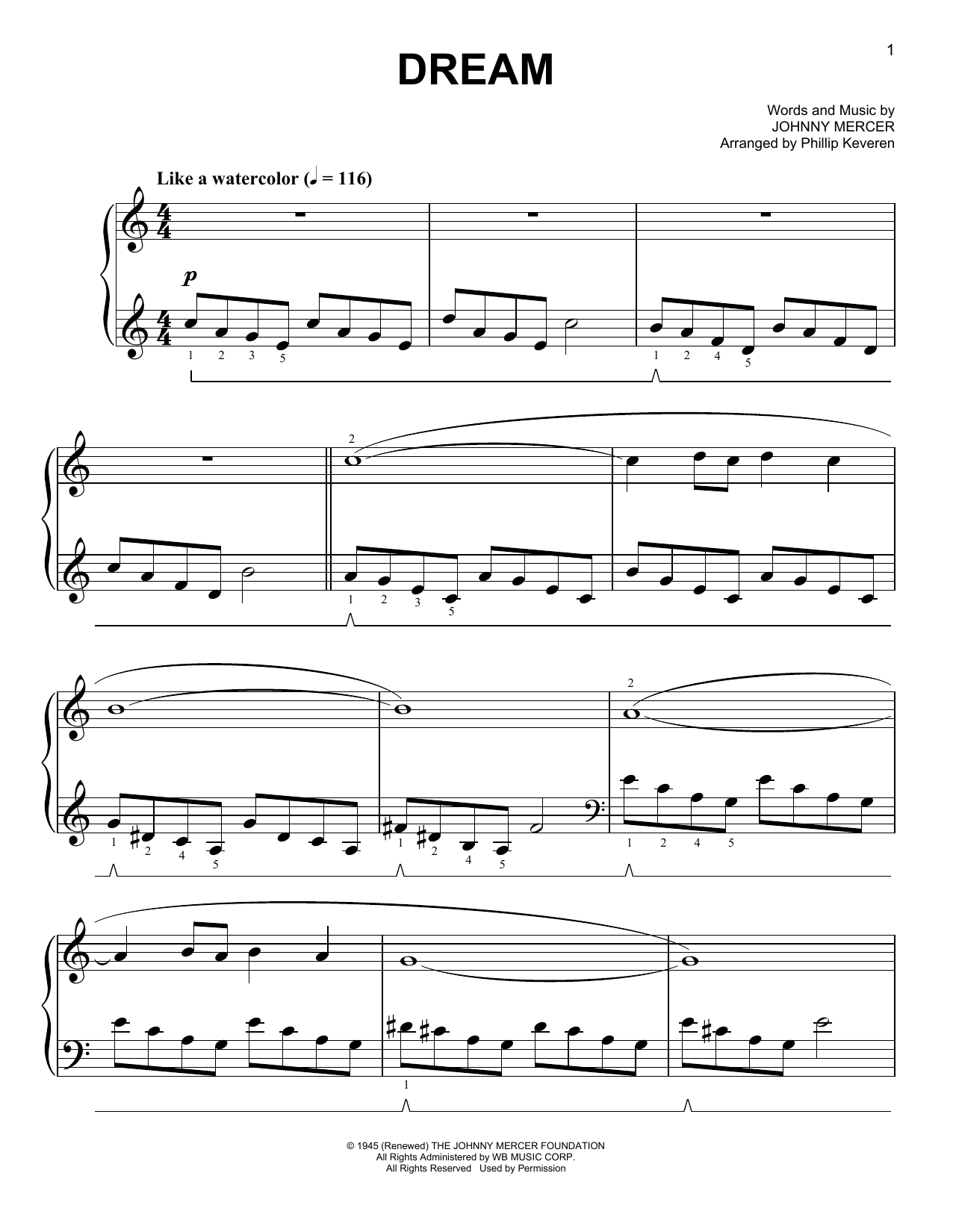 Download or print Johnny Mercer Dream [Classical version] (arr. Phillip Keveren) sheet music, chords and digital score arranged for Easy Piano. This Jazz score includes 3 page(s).