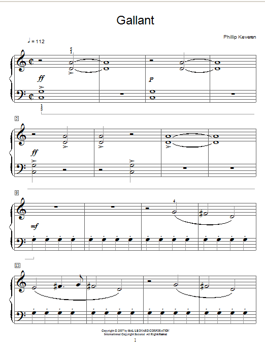 Download or print Phillip Keveren Gallant sheet music, chords and digital score arranged for Piano Solo. This New Age score includes 3 page(s).
