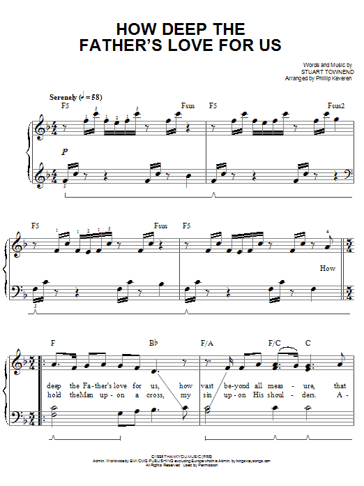 Download or print Stuart Townend How Deep The Father's Love For Us (arr. Phillip Keveren) sheet music, chords and digital score arranged for Piano Solo. This Praise & Worship score includes 2 page(s).