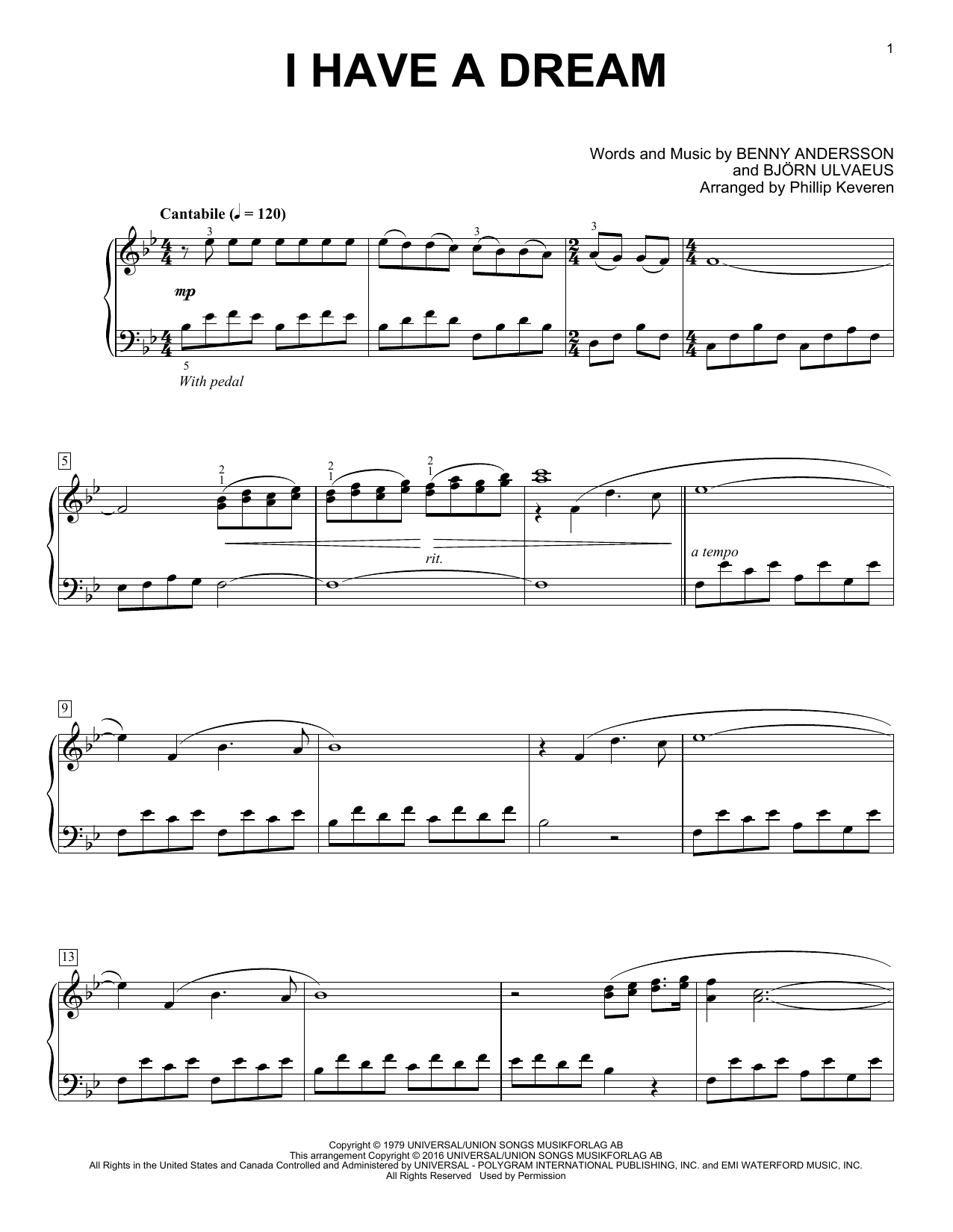 Download or print ABBA I Have A Dream (arr. Phillip Keveren) sheet music, chords and digital score arranged for Piano Solo. This Disco score includes 4 page(s).