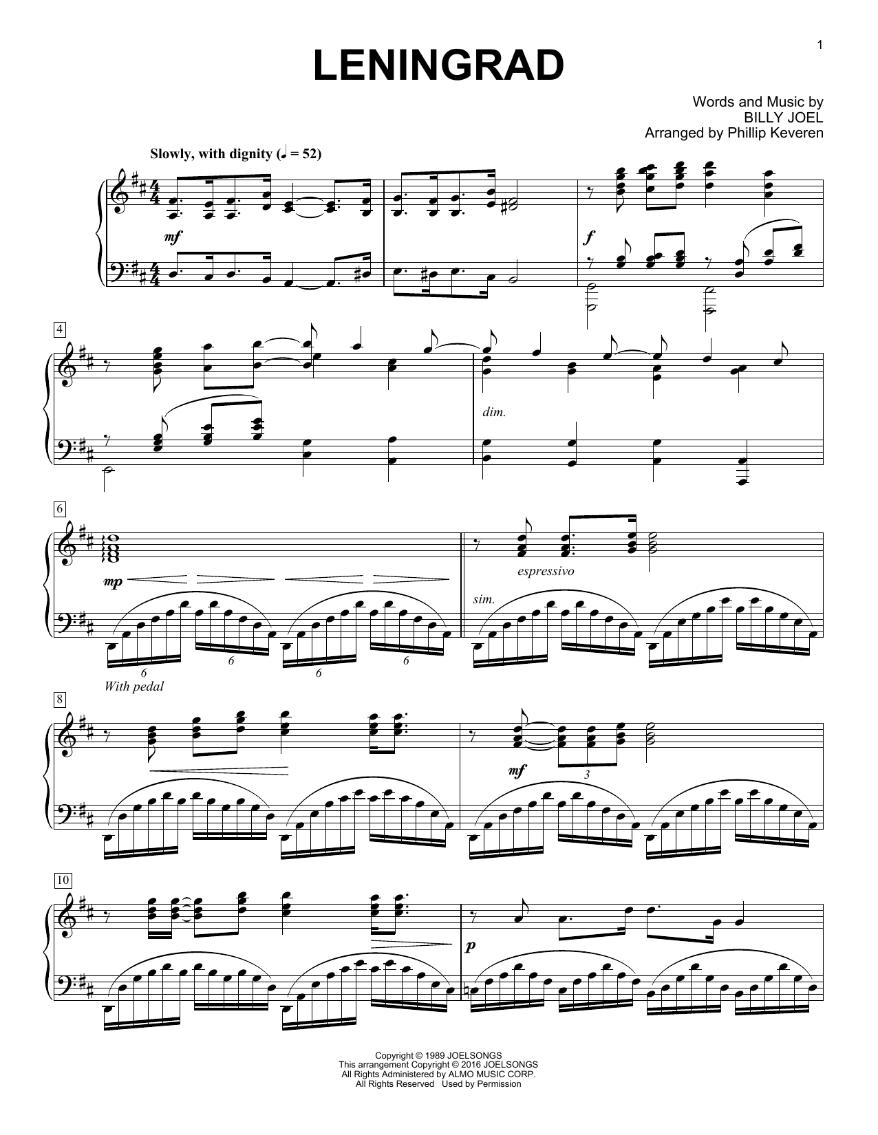 Download or print Billy Joel Leningrad [Classical version] (arr. Phillip Keveren) sheet music, chords and digital score arranged for Piano Solo. This Pop score includes 4 page(s).