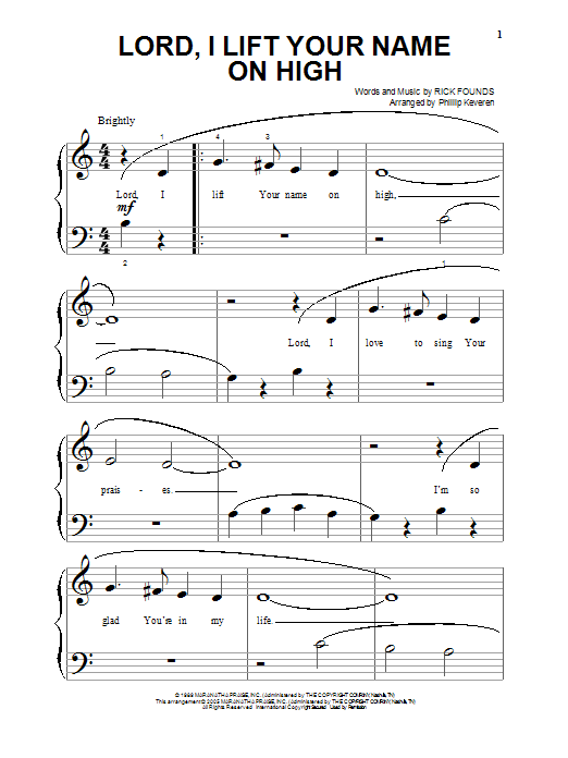 Download or print Rick Founds Lord, I Lift Your Name On High (arr. Phillip Keveren) sheet music, chords and digital score arranged for Beginning Piano Solo. This Praise & Worship score includes 3 page(s).