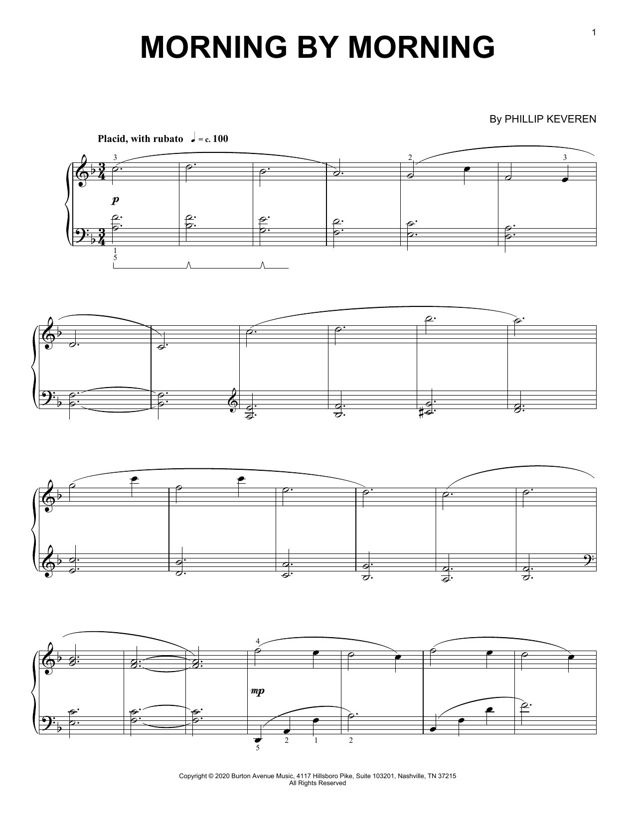 Download or print Phillip Keveren Morning By Morning sheet music, chords and digital score arranged for Piano Solo. This Sacred score includes 2 page(s).