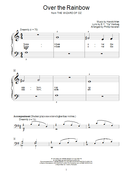 Quick facts Over The Rainbow (arr. Phillip Keveren) about digital sheet music
