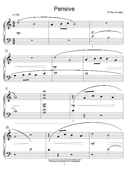 Download or print Phillip Keveren Pensive sheet music, chords and digital score arranged for Piano Solo. This New Age score includes 2 page(s).