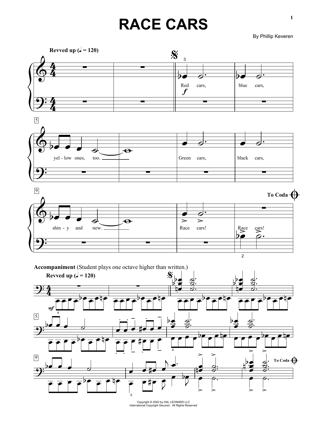 Download or print Phillip Keveren Race Cars sheet music, chords and digital score arranged for Beginning Piano Solo. This Children score includes 2 page(s).