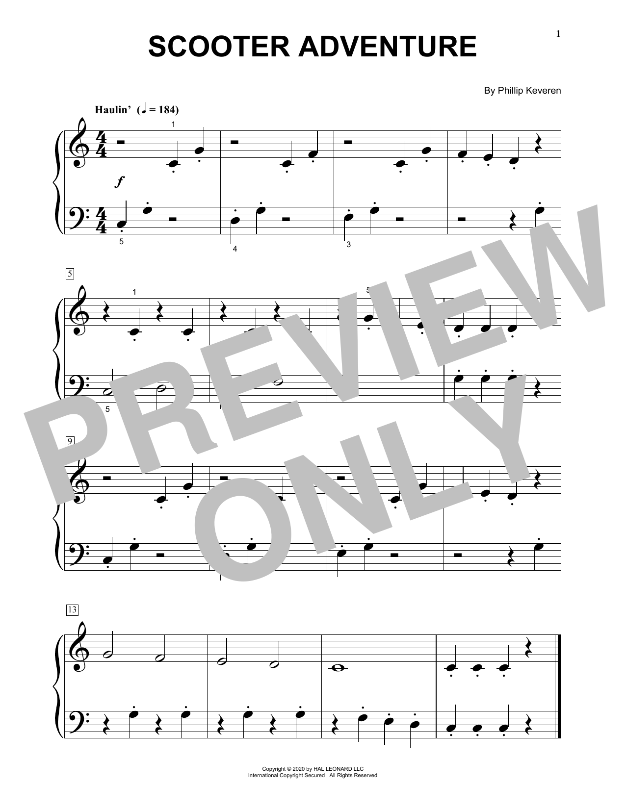 Download or print Phillip Keveren Scooter Adventure sheet music, chords and digital score arranged for Beginning Piano Solo. This Children score includes 1 page(s).